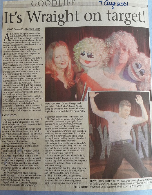 Scrapbook memories… every now and then I dip into scrapbooks that piled up during my 24 years as Arts Editor of The Mercury newspaper in Durban and, just for fun, dig out reviews and interviews from yesteryear. Today we go back to May and August 2001.