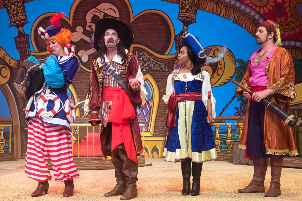All end up taking an adventure on the high seas with conniving pirate king Long John Slither (Darren King, channelling Captain Hook), his comical sidekick Mustapha KitKat (a standout, loose-limbed Mthokozisi Zulu); Slither’s sweet daughter Marina (a radiant Amanda Kunene, a former Idols contestant who was so good in the Young Performers’ Seussical The Musical) and her sidekick Ameena Labeeba (leggy and amusing Marion Loudon, having an absolute ball).