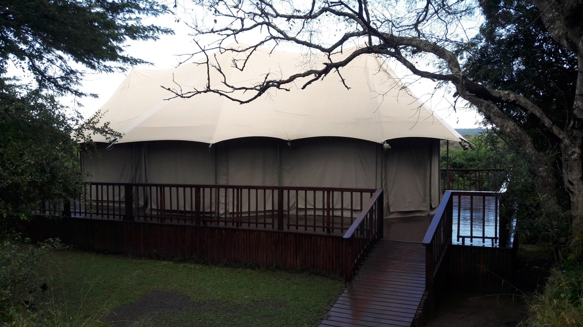 The No 7 luxury tented unit at Thula Thula Game Reserve in Empangeni. This is the unit I enjoyed – built on a large wooden deck overlooking a river