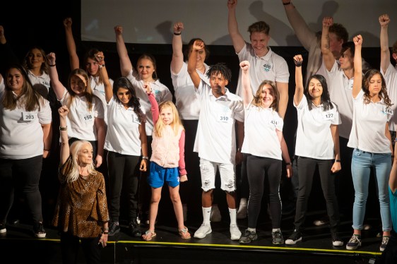 Project Performer artists aged seven to 26, in rehearsal for the opening act of the Project Performer Showcase 2019. They are with Dance coach Kim Hayman Felix (front).