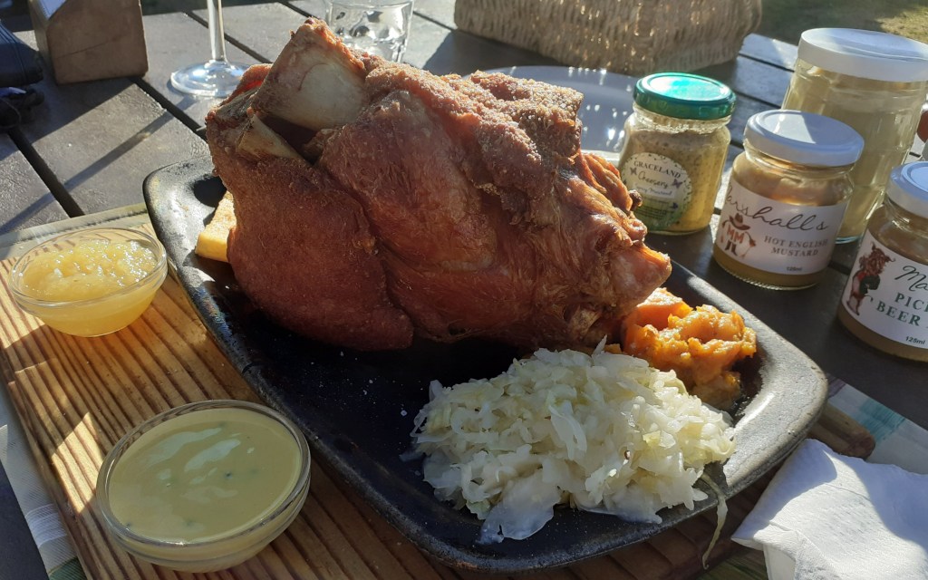 We took great delight in the many trees glistening with the golds, oranges, burgundies, browns and reds of autumnal cloaks. And we had developed quite an appetite by the time we arrived at the venue that, not for nothing, carries the slogan “home of the crispy eisbein”.