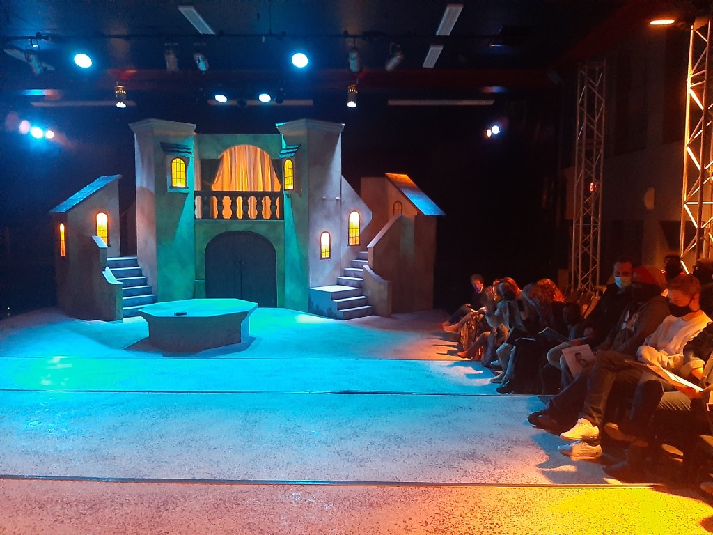 This Romeo and Juliet takes place in what the programme labels as a semi-fantastical Medieval Verona, where a customarily fine set by KickstArt’s award-winning Greg King dominates a sloping, triple-tiered stage area that extends into the audience on three sides, allowing greater intimacy.