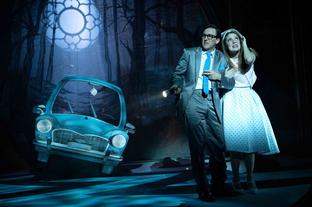 Bryan Hiles as Brad and Keryn Lynne Scott as Janet in The Rocky Horror Show.
